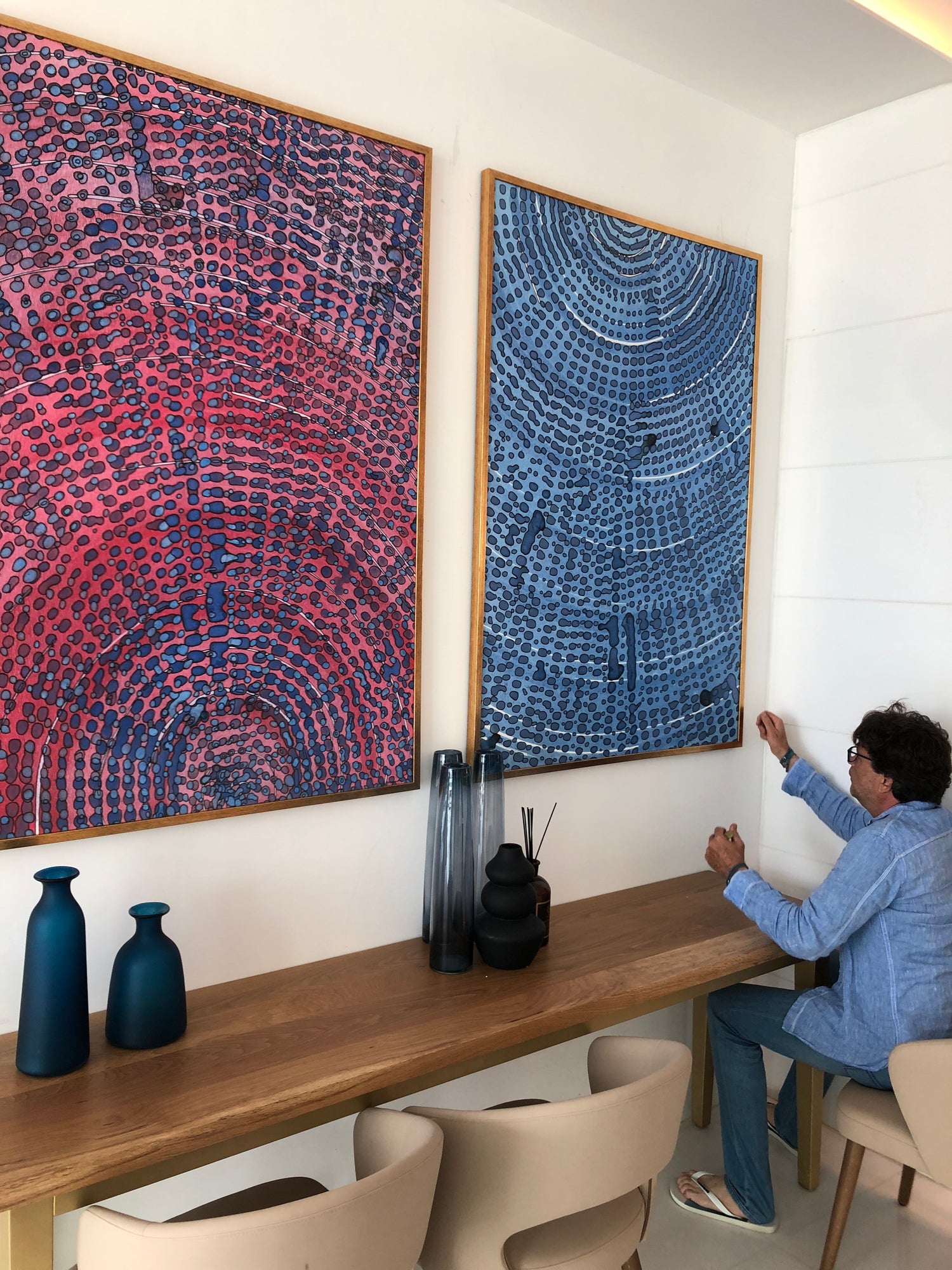 The artworks were selected to fit the Mediterranean atmosphere of the hotel.